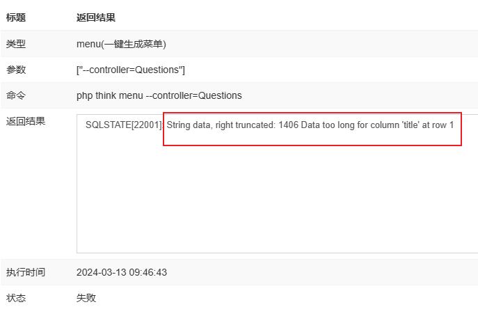 生成菜单时失败,出现1406 Data too long 怎么解决?